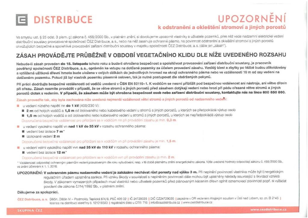 Upozornění k odstranění a okleštění stromoví a jiných porostů