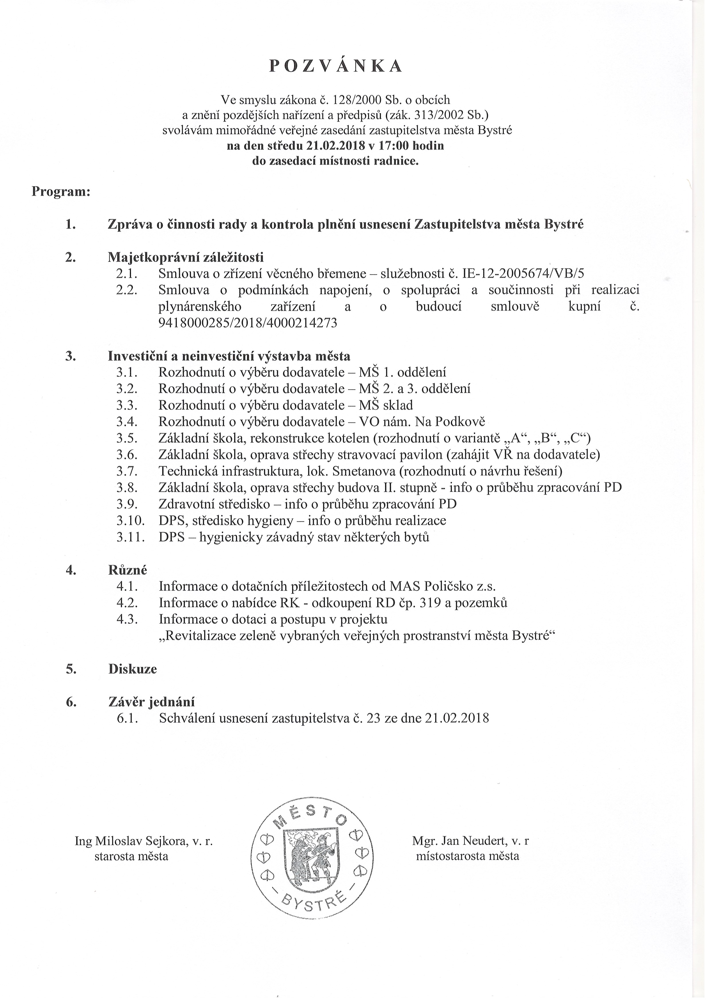 Pozvánka na mimořádné veřejné zasedání ZM